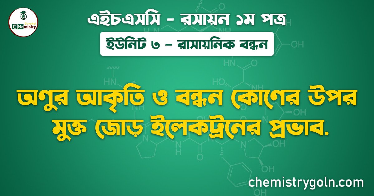 অণুর আকৃতি ও বন্ধন কোণের উপর মুক্ত জোড় ইলেকট্রনের প্রভাব আমাদের আজকের আলোচনার বিষয়। এই পাঠটি “এইচএসসি রসায়ন ১ম পত্র” এর “রাসায়নিক বন্ধন” ইউনিট ৩ এর অন্তর্ভুক্ত।