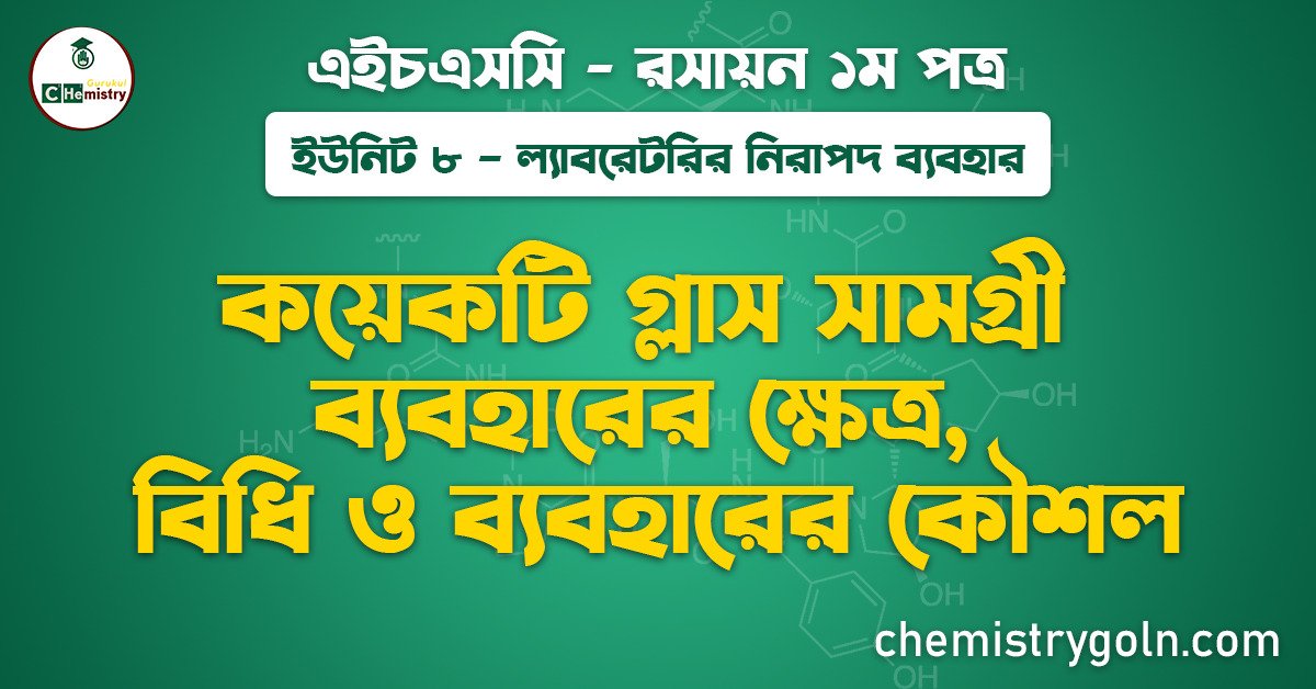 কয়েকটি গ্লাস সামগ্রী ব্যবহারের ক্ষেত্র, বিধি ও ব্যবহারের কৌশল আমাদের আজকের আলোচনার বিষয়। এই পাঠটি “এইচএসসি রসায়ন ১ম পত্র” এর “ল্যাবরেটরির নিরাপদ ব্যবহার” ইউনিট ৮ এর অন্তর্ভুক্ত।