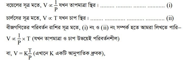 বয়েল ও চার্লসের সূত্রের সমন্বয় (Combination of Boyel’s Law and Charles’ Law)