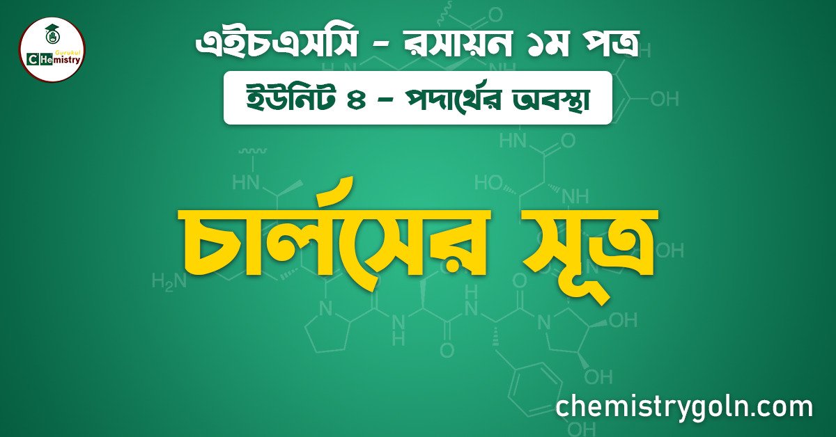 চার্লসের সূত্র আমাদের আজকের আলোচনার বিষয়। এই পাঠটি “এইচএসসি রসায়ন ১ম পত্র” এর “পদার্থের অবস্থা” ইউনিট ৪ এর অন্তর্ভুক্ত।