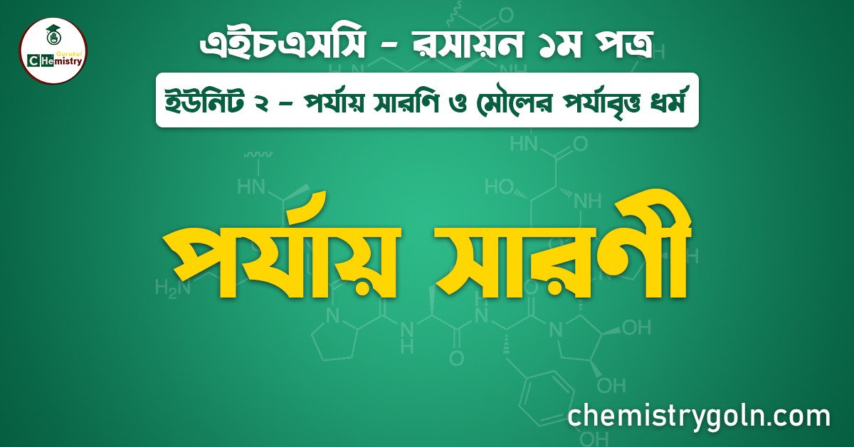 পর্যায় সারণী আমাদের আজকের আলোচনার বিষয়। এই পাঠটি “এইচএসসি রসায়ন ১ম পত্র” এর “পর্যায় সারণি ও মৌলের পর্যাবৃত্ত ধর্ম” ইউনিট ২ এর অন্তর্ভুক্ত