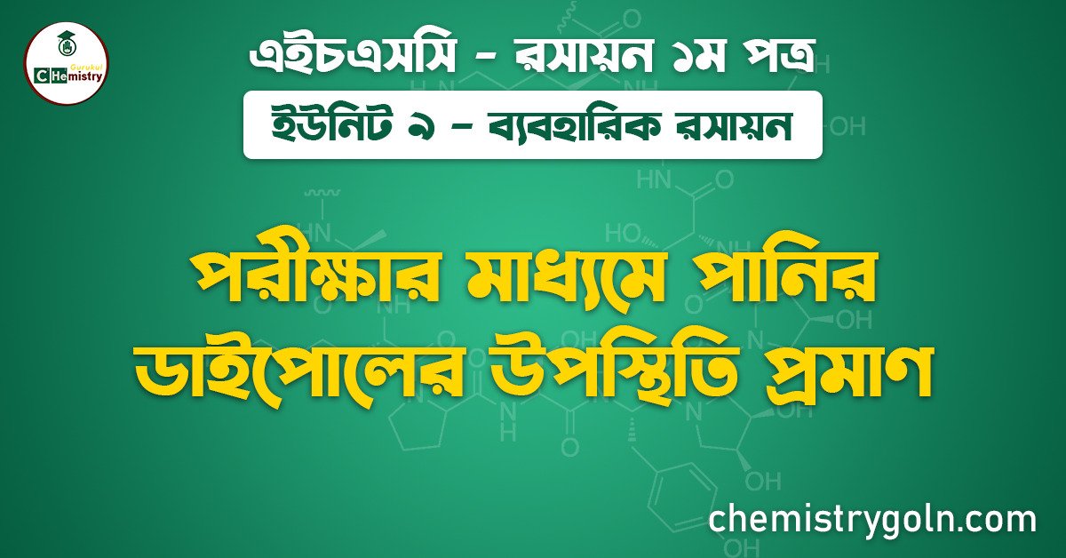পরীক্ষার মাধ্যমে পানির ডাইপোলের উপস্থিতি প্রমাণ আমাদের আজকের আলোচনার বিষয়। এই পাঠটি “এইচএসসি রসায়ন ১ম পত্র” এর “ব্যবহারিক রসায়ন” ইউনিট ৯ এর অন্তর্ভুক্ত।