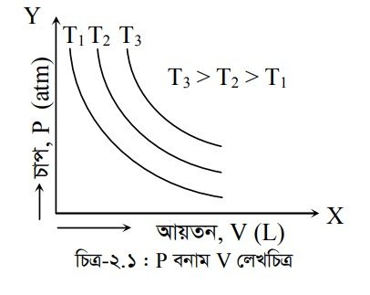 অপরদিকে PV গুণফলকে P-এর বিপরীতে বসিয়ে লেখচিত্র অঙ্কন করলে বিভিন্ন তাপমাত্রায় P অক্ষের সমান্তরাল সরলরেখা পাওয়া যায় ।