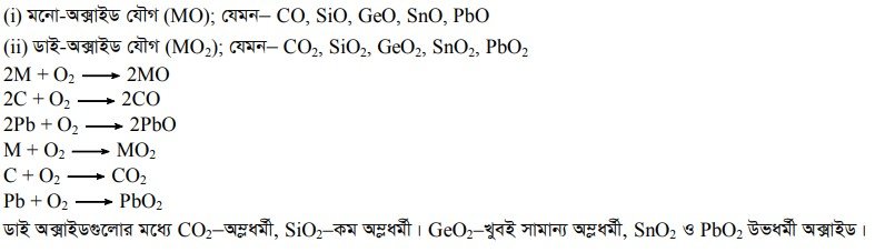(১) অ-িজেনের সাথে : 14তম গ্রুপের মৌল অক্সিজেনের সাথে বিক্রিয়া করে দুই ধরনের অক্সাইড যৌগ গঠন করে।