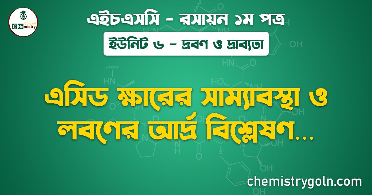 এসিড ক্ষারের সাম্যাবস্থা ও লবণের আর্দ্র বিশ্লেষণ আমাদের আজকের আলোচনার বিষয়। এই পাঠটি “এইচএসসি রসায়ন ১ম পত্র” এর “দ্রবণ ও দ্রাব্যতা” ইউনিট ৬ এর অন্তর্ভুক্ত।