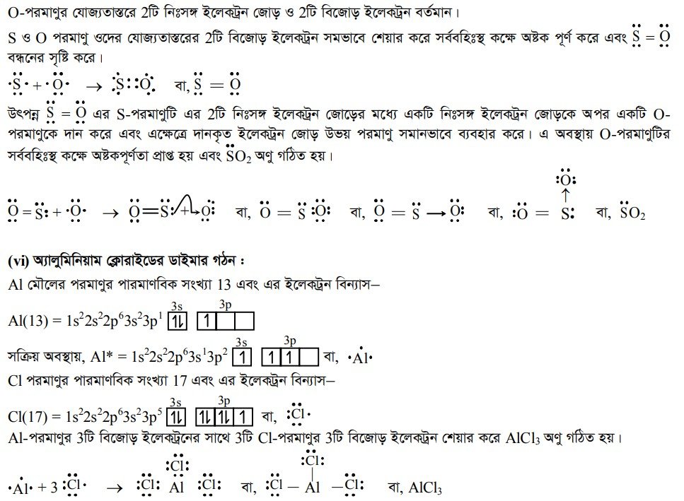 (iii) দাতা পরমাণু কর্তৃক দানকৃত ইলেকট্রন জোড় দাতা ও গ্রহীতা উভয় পরমাণুর মধ্যে সমানভাবে বিন্যস্ত থেকে দাতা ও গ্রহীতা উভয় পরমাণু সমানভাবে ব্যবহার করবে। দুটি পরমাণুর মধ্যে কোনো ধরনের সম্পূর্ণভাবে ইলেকট্রনের গ্রহণ বা ত্যাগ ঘটবে না ।