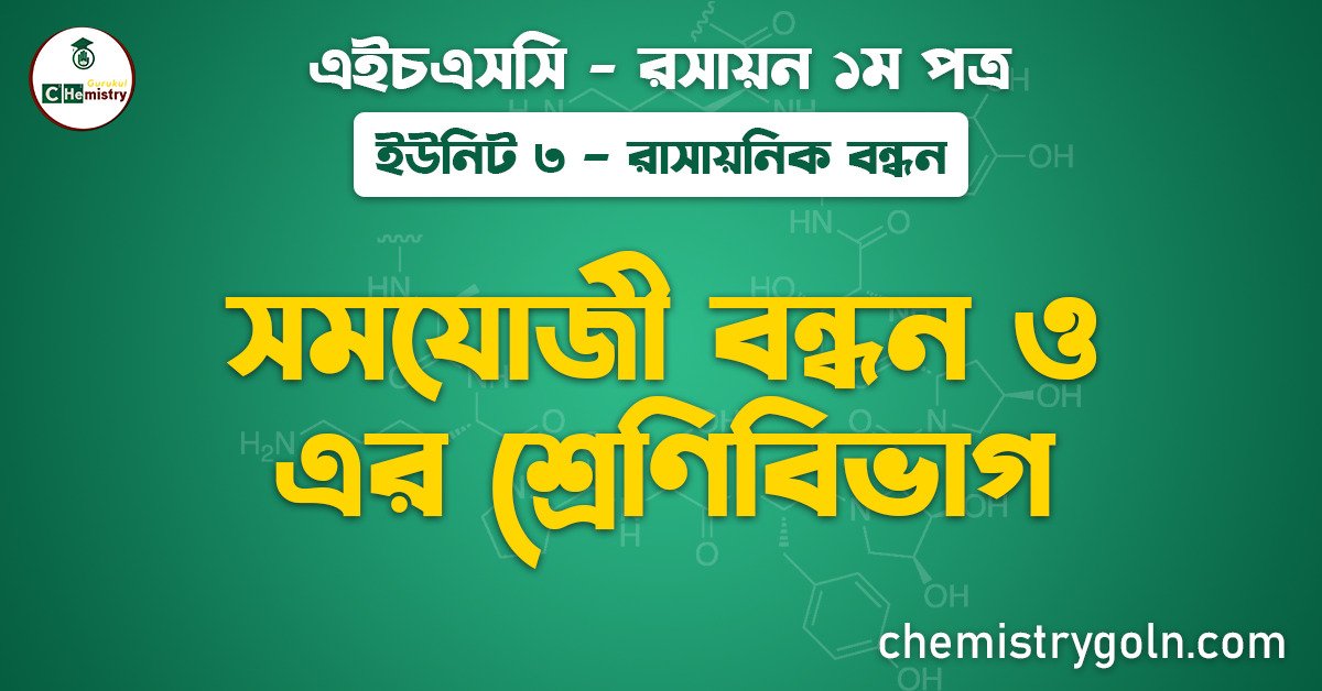 সমযোজী বন্ধন ও এর শ্রেণিবিভাগ আমাদের আজকের আলোচনার বিষয়। এই পাঠটি “এইচএসসি রসায়ন ১ম পত্র” এর “রাসায়নিক বন্ধন” ইউনিট ৩ এর অন্তর্ভুক্ত।