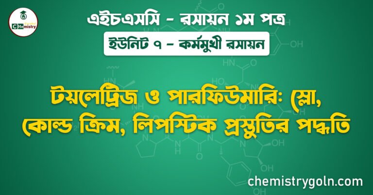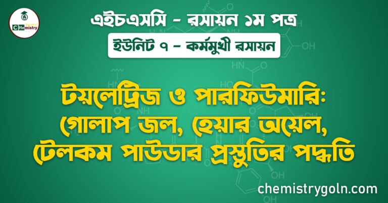 টয়লেট্রিজ ও পারফিউমারি: গোলাপ জল, হেয়ার অয়েল, টেলকম পাউডার প্রস্তুতির পদ্ধতি আমাদের আজকের আলোচনার বিষয়। এই পাঠটি “এইচএসসি রসায়ন ১ম …