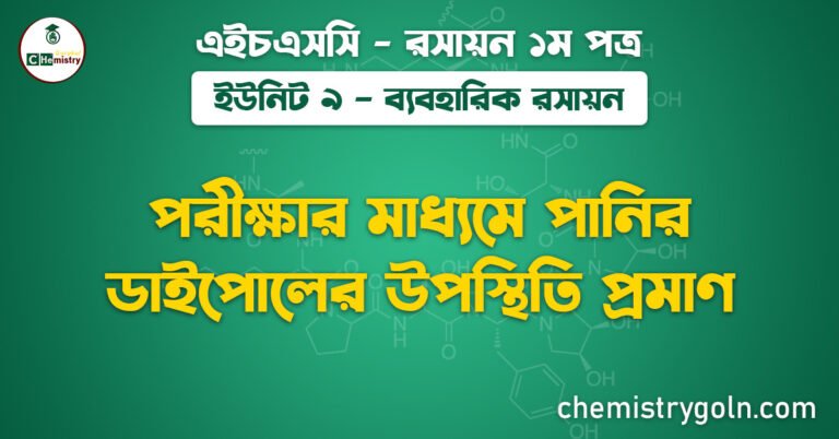 পরীক্ষার মাধ্যমে পানির ডাইপোলের উপস্থিতি প্রমাণ আমাদের আজকের আলোচনার বিষয়। এই পাঠটি “এইচএসসি রসায়ন ১ম পত্র” এর “ব্যবহারিক রসায়ন” ইউনিট …