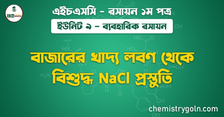 বাজারের খাদ্য লবণ থেকে বিশুদ্ধ NaCl প্রস্তুতি আমাদের আজকের আলোচনার বিষয়। এই পাঠটি “এইচএসসি রসায়ন ১ম পত্র” এর “ব্যবহারিক রসায়ন” …