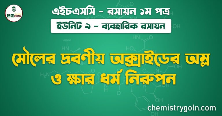 মৌলের দ্রবণীয় অক্সাইডের অম্ল ও ক্ষার ধর্ম নিরুপন আমাদের আজকের আলোচনার বিষয়। এই পাঠটি “এইচএসসি রসায়ন ১ম পত্র” এর “ব্যবহারিক …