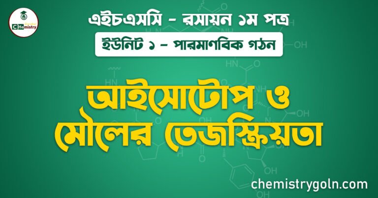 আইসোটোপ ও মৌলের তেজস্ক্রিয়তা আমাদের আজকের আলোচনার বিষয়। এই পাঠটি “এইচএসসি রসায়ন ১ম পত্র” এর “পারমাণবিক গঠ” ইউনিট ১ এর …