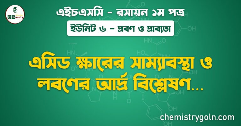 এসিড ক্ষারের সাম্যাবস্থা ও লবণের আর্দ্র বিশ্লেষণ আমাদের আজকের আলোচনার বিষয়। এই পাঠটি “এইচএসসি রসায়ন ১ম পত্র” এর “দ্রবণ ও …