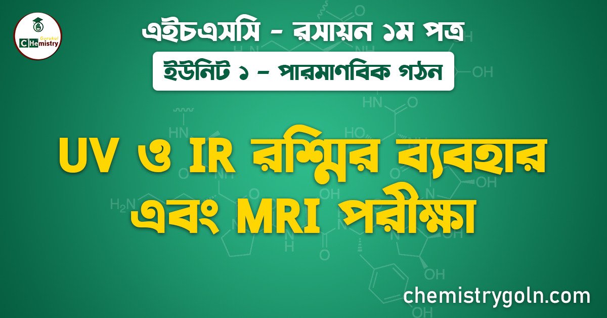 UV ও IR রশ্মির ব্যবহার এবং MRI পরীক্ষা আমাদের আজকের আলোচনার বিষয়। এই পাঠটি “এইচএসসি রসায়ন ১ম পত্র” এর “পারমাণবিক গঠ” ইউনিট ১ এর অন্তর্ভুক্ত